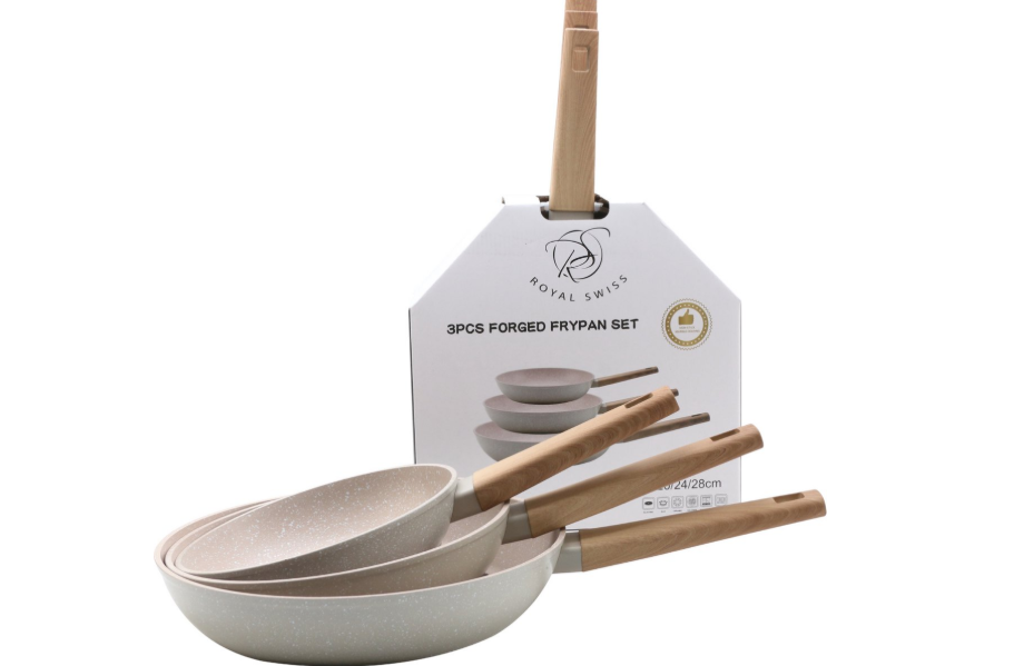 Royal Swiss® 3-delige Koekenpannenset met Afneembare Handgreep – Geschikt voor alle warmtebronnen, inclusief inductie (20/24/28 cm)