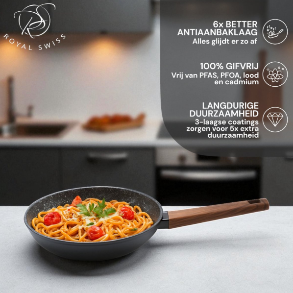 Met de Royal Swiss pannenset haal je alles in huis wat je nodig hebt voor comfortabel, efficiënt en veilig koken.